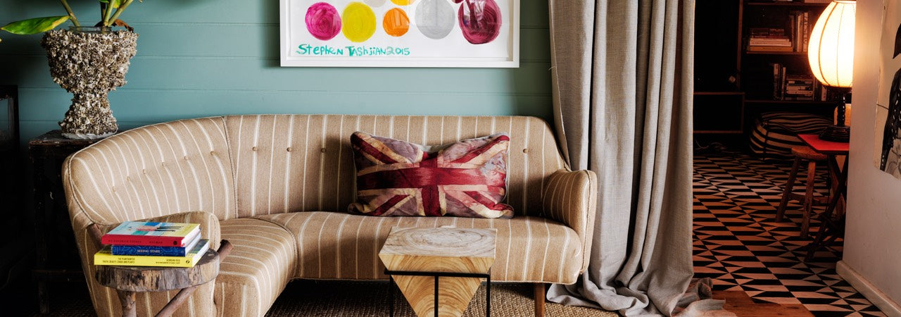 These days, Court calls Bundeena home, a coastal town south of Sydney that’s rife with rock pools and eucalyptus. Together with her husband Ben and their six-year-old daughter, Silver, she lives in a weatherboard home among all of her found treasures—vintage sinks, sea shells, stained glass, oil paintings. Her own collection of wallpaper graces the old home’s walls, inspired (of course) by her grandmother.